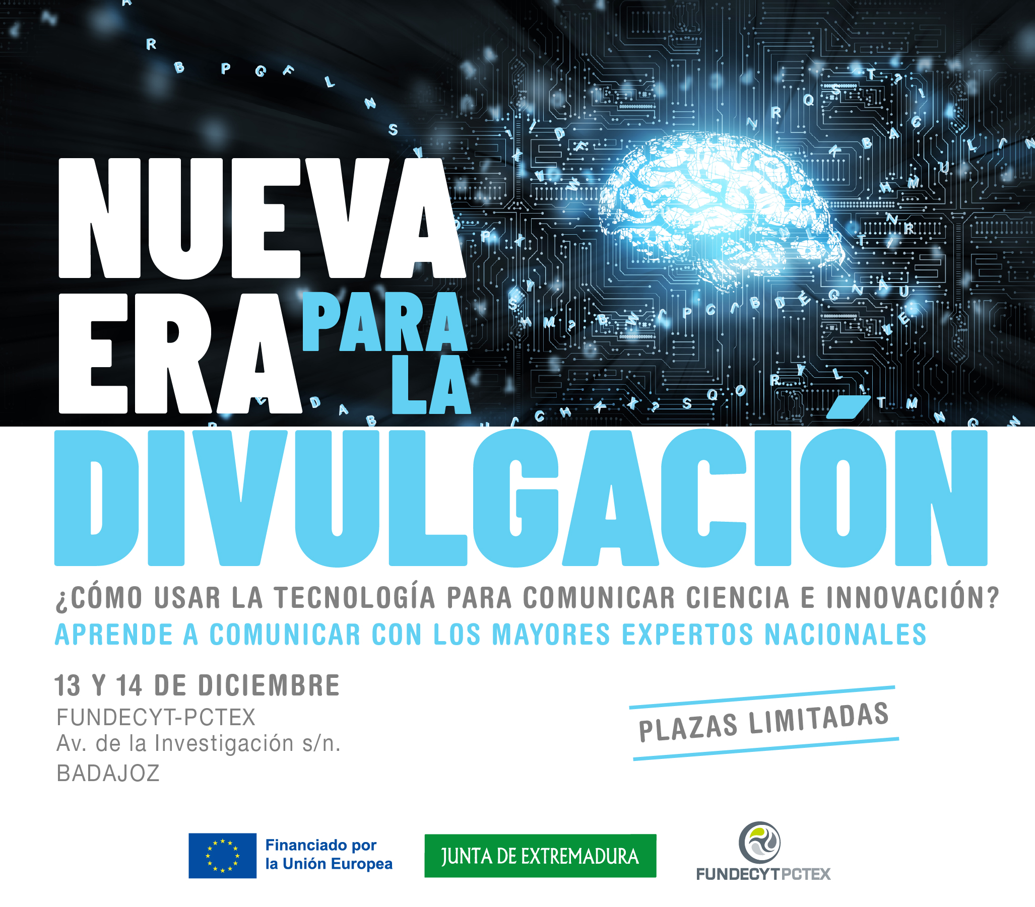 La Fundación organiza los días 13 y 14 de diciembre en Badajoz el taller de divulgación científica: “La Nueva Era de la Divulgación Científica ¿Cómo usar la tecnología para comunicar ciencia e innovación?”, que contará con expertos nacionales de reconocido prestigio y un enfoque práctico para la comunicación a través de las nuevas plataformas digitales